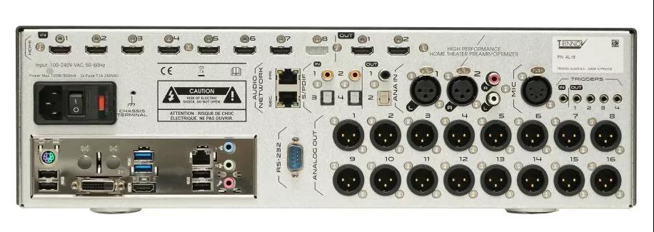 筆者面前正放著 Trinnov 最新鮮出爐的 Altitude 16,顧名思義,就是一款 16 聲道版環(huán)繞聲處理器。背板可見,“她”從 Altitude 32 的頂級設(shè)計中略了 DB25 連接端口,僅留一對模擬式平衡輸入端口,另留三組同軸/光纖數(shù)碼輸入; HDMI 輸入部分,HDMI 1-3 屬于 Low Speed 低速版本,4-7 則屬于 High Speed 高速版本;至于被封住的 HDMI 8,預(yù)留日后升級之用;輸出 HDMI 1 不設(shè) ARC (音信回輸功能),HDMI 2 則備 ARC 音效回輸功能。