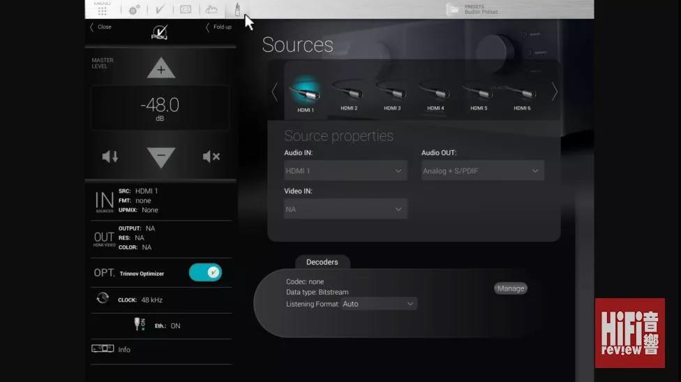 ▲ Trinnov 的平板操作介面在 VNC app 上運行,首頁可見可以清楚顯示輸入及輸出資料。
