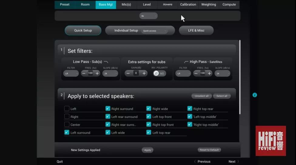 ▲ 除了為每個聲道設(shè)置分頻點,還可以為每個聲道設(shè)置 Low Pass 或 High Pass 濾波,換句話說,哪管你是聯(lián)合國環(huán)繞聲系統(tǒng),它也有能力把不同特性的揚聲器差異盡量收窄。