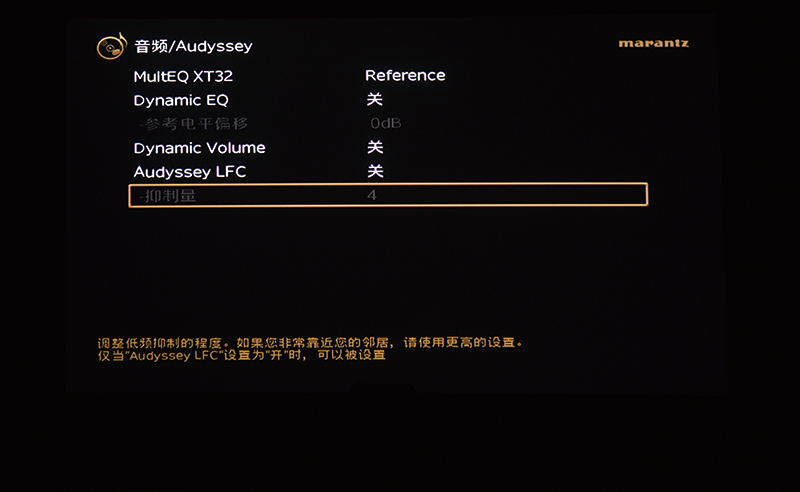AV8805人性化的一面不僅僅表現在使用上,在功能上也能體現到人性化的一面。例如,AV8805的Audyssey聲場處理功能里面提供一個Audyssey LFC的功能。根據菜單上給出的解釋就是“避免低音穿過墻壁影響到鄰居”。這個功能總共提供4檔調節,低音炮越靠近鄰居使用的檔位就越高。這個功能實際上有用嗎?我記得剛開始使用AV8805的時候,因為心情太過興奮而將音量開大,轟隆隆的低音遭到樓上公司的投訴,后來就嘗試開啟該功能,并將等級調整至4檔,發現非常有效,再也沒有收到的投訴了!